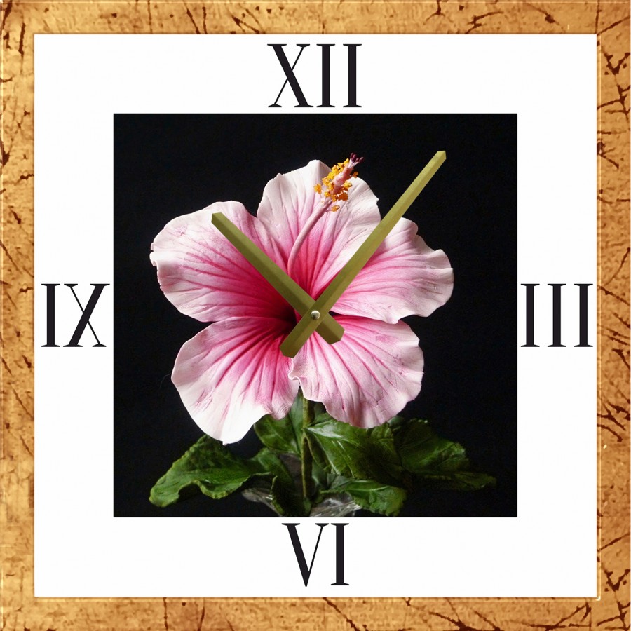 Часы с паспарту в золотом багете 50х50 ЧБС(92)